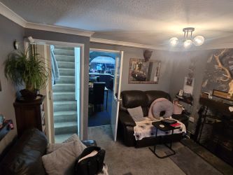 Front yard leading to reception room that leads to dinning room and new kitchen along with exit door to back yard that overlook the huge piece of land